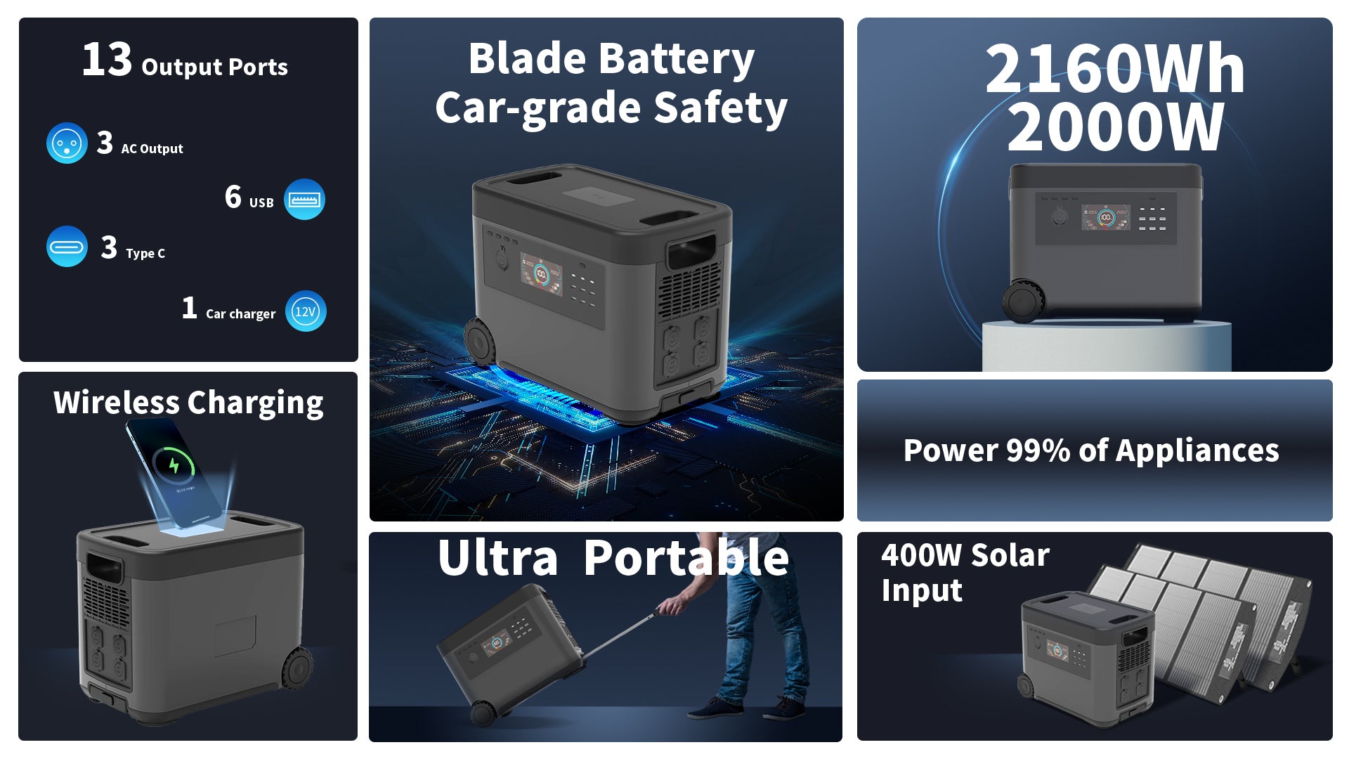 2160Wh 2500W, Power 99% Home Applicances When Power Outage